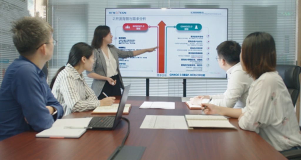 ▲2022年10月,王婷組織團隊討論軟件研發規劃