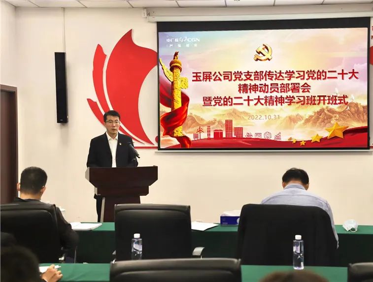10月31日,玉屏公司組織召開(kāi)了傳達(dá)學(xué)習(xí)黨的二十大精神動(dòng)員部署會(huì)。 會(huì)議要求,一要統(tǒng)一思想、高度重視,充分認(rèn)識(shí)到黨的二十大的重大意義,把學(xué)習(xí)宣傳貫徹黨的二十大精神作為當(dāng)前和今后一個(gè)時(shí)期的首要政治任務(wù)抓緊抓牢抓實(shí);二要把握主題,全面準(zhǔn)確學(xué)習(xí)領(lǐng)會(huì)黨的二十大提出的新思想新論斷新任務(wù)新要求;三要精心安排,認(rèn)真組織,在學(xué)懂弄通做實(shí)上下功夫。切實(shí)把學(xué)習(xí)成效轉(zhuǎn)化為全方位推進(jìn)工作高質(zhì)量發(fā)展的具體行動(dòng)和實(shí)際成效,以昂揚(yáng)的精神狀態(tài)為中廣核高質(zhì)量發(fā)展貢獻(xiàn)力量。
