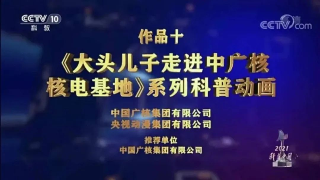 2021年,聯(lián)合央視創(chuàng)作的《大頭兒子走進(jìn)中廣核核電基地》系列科普動畫,榮獲“典贊·2021科普中國”十大科普作品。