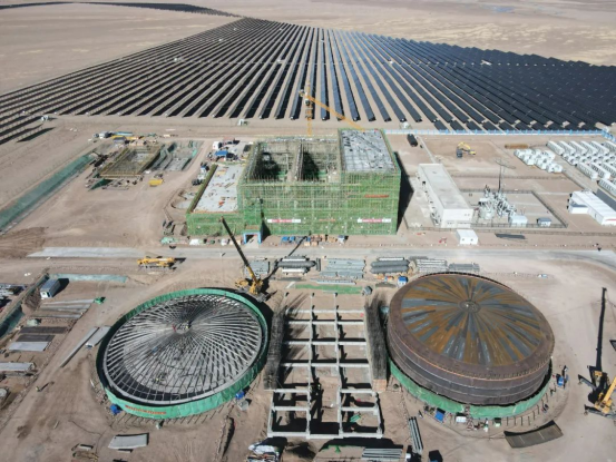 ▲中廣核阿里“零碳”光儲熱電示范項目當中的50兆瓦光熱項目正在建設中