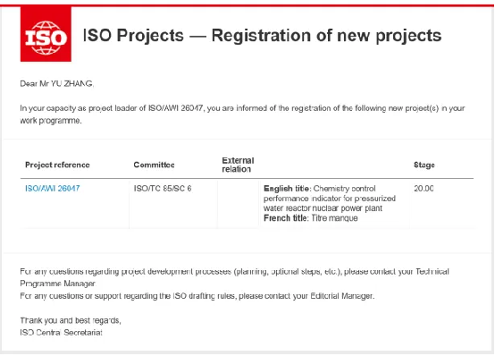 近日,國際標準化組織(ISO)正式通知大亞灣核電,由中國主編,法國、英國、俄羅斯、比利時、芬蘭、瑞士、意大利七個核電重要國家支持并參與編制的ISO 26047《Chemistry control performance indicator for pressurized water reactor nuclear power plants》(壓水堆核電廠化學控制效能指標)成功立項,大亞灣核電化學高級主任工程師張裕出任項目負責人。該標準作為評估核電廠整體水化學控制效能的量化標尺,可反饋關鍵化學參數(shù)控制的符合性、有效性及系統(tǒng)設備的缺陷與不足,將為全球壓水堆電廠運維策略制定提供權威依據(jù)。