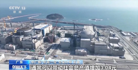 中廣核“華龍一號”總設計師王鑫在采訪中表示,在核電建設環節,1元核電投資,將拉動社會總產出增長3.04元、GDP增長1.03元;穩定運營后,生產1元核電電力,可拉動社會總產值增長2.22元,GDP增長1.18元。